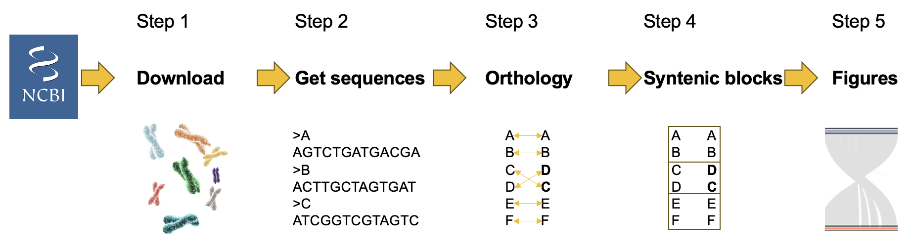 - Produces synteny visualizations and summary tables.